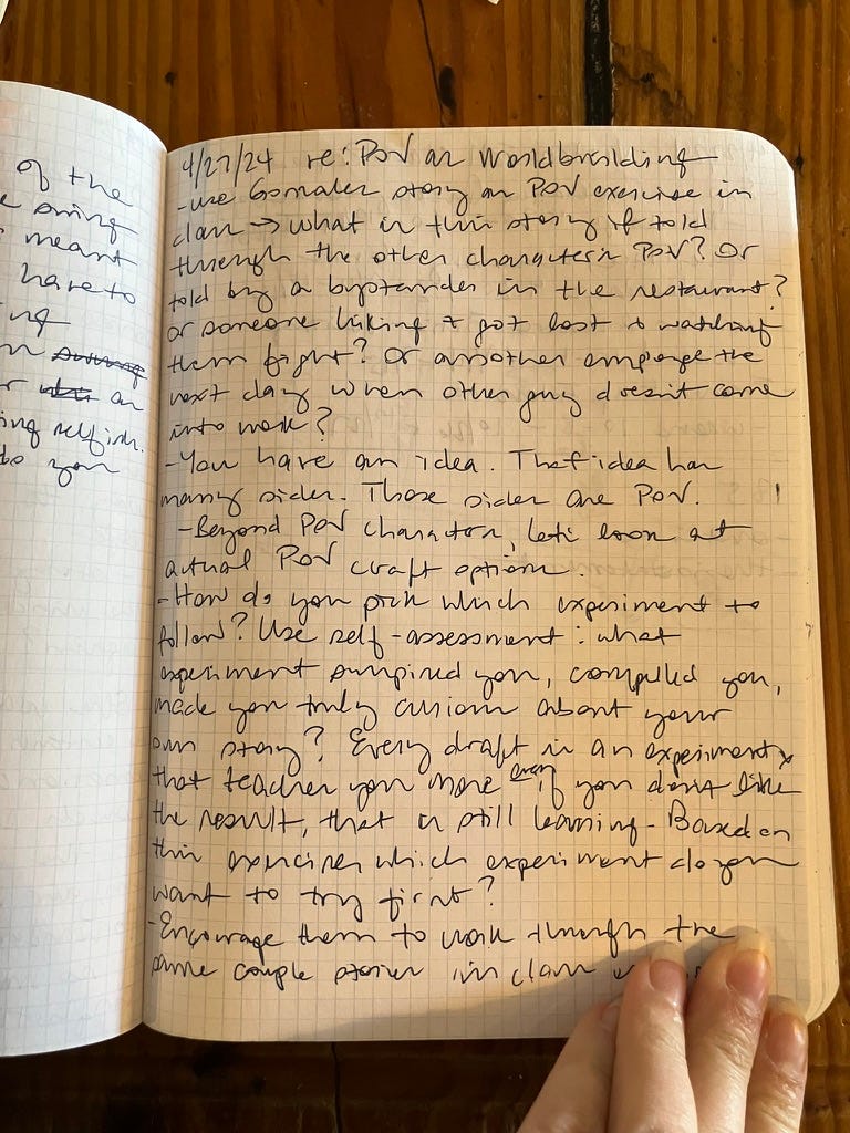 Twice-yearly one-day writing classes (online or in-person, depending, and specifically fiction or nonfiction).
